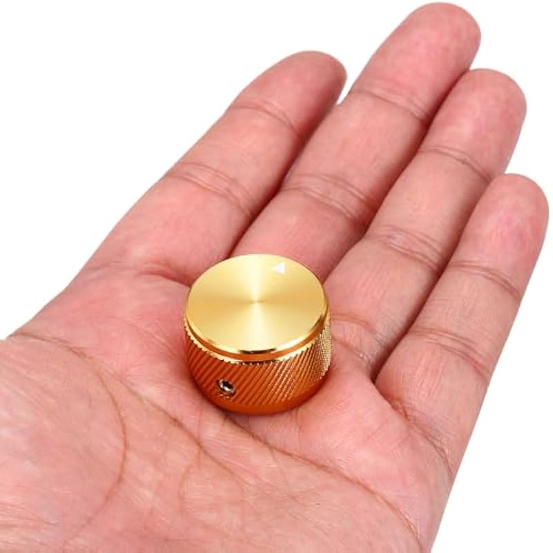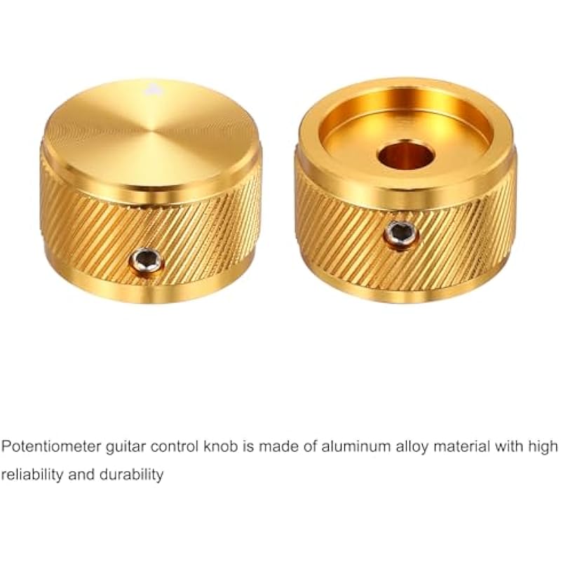 - Outstanding Durability: This volume tone control knob is made of aluminum alloy, which is not only lightweight but also has excellent durability, ensuring its long-term use. Great adaptability: This potentiometer knob has a standard 1/4″ (6mm) mounting hole that can easily adapt to most guitars, bass and other musical instruments, and a wrench is included to make installation more convenient.