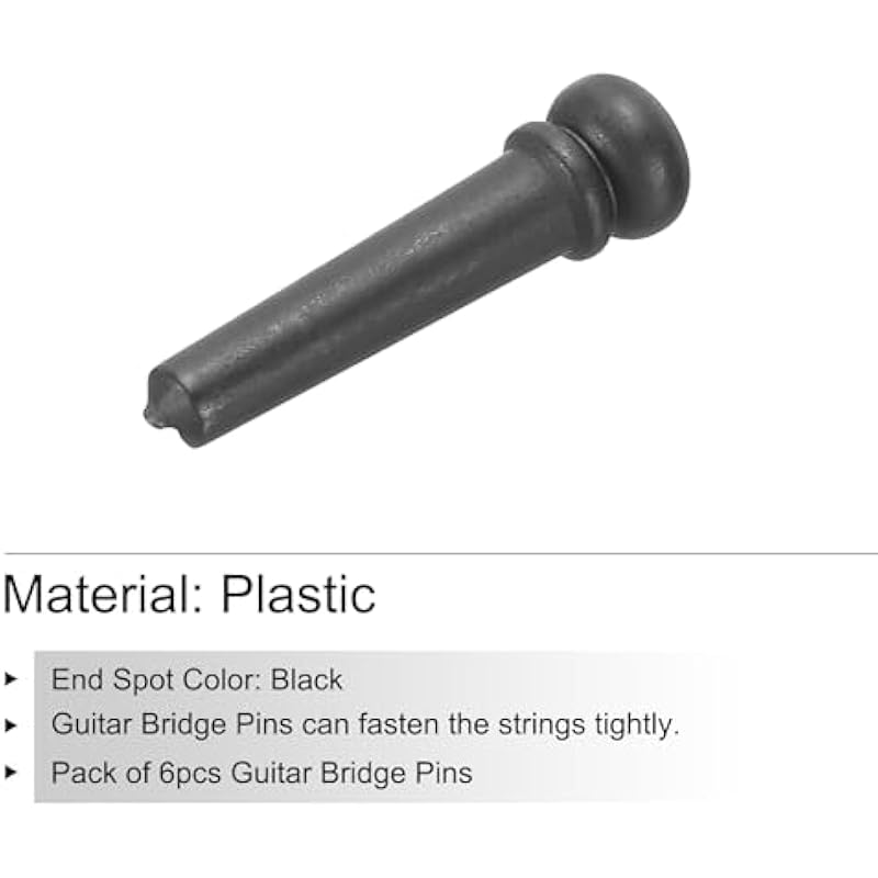 - Length x head diameter : 29x8mm/1.14×0.31inch;Buckle installation diameter: 5mm/0.19inch;Material: Ebony;End Spot Color: Black ;Pack of 6pcs Guitar Bridge Pins