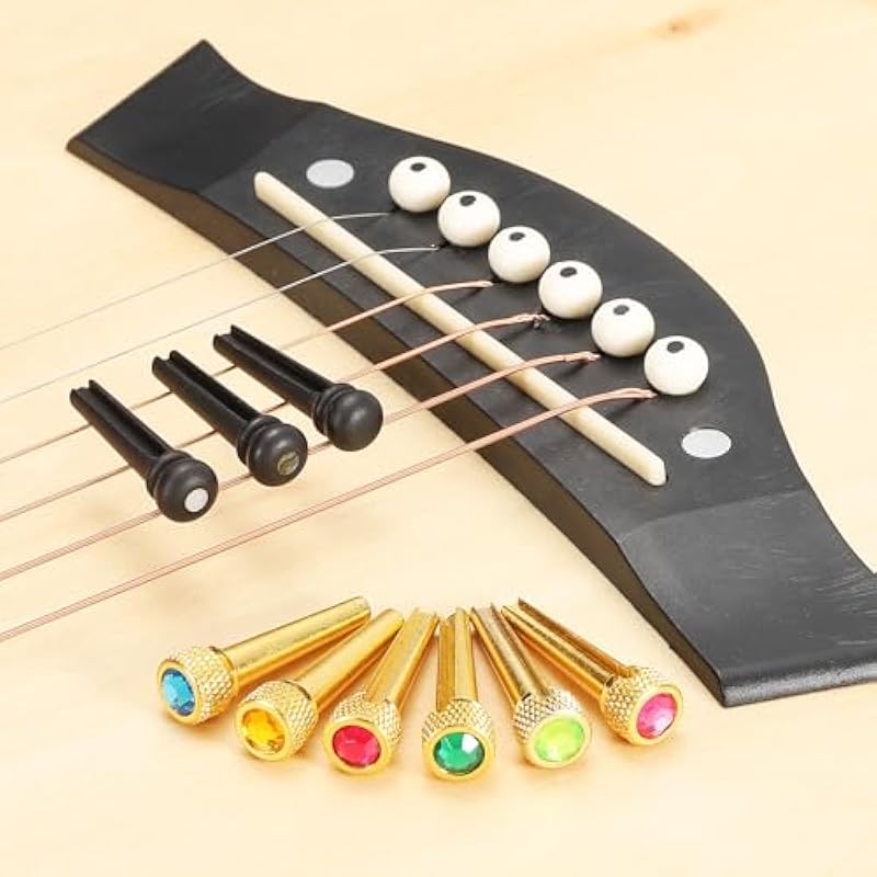 - Guitar Bridge Pins can fasten the strings tightly, and add clarity, tone, sustain, and volume to your acoustic guitar. You can choose different colors to create a personalized match and upgrade the appearance of your bridge.