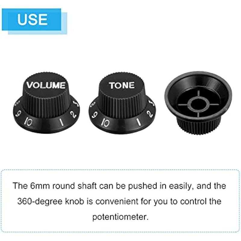 - This guitar control knob can replace the damaged, dirty, or old volume control knob, mainly used to adjust the sound output of the ST/SQ electric guitar.