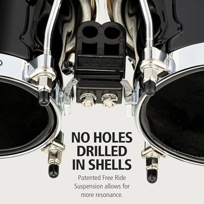 - Meinl Free Ride Suspension System — the two individual drums are attached with the Meinl Free Ride Suspension system, a patented design that avoids holes being drilled into the shells — this allows for greater resonance and works with any bongo stand