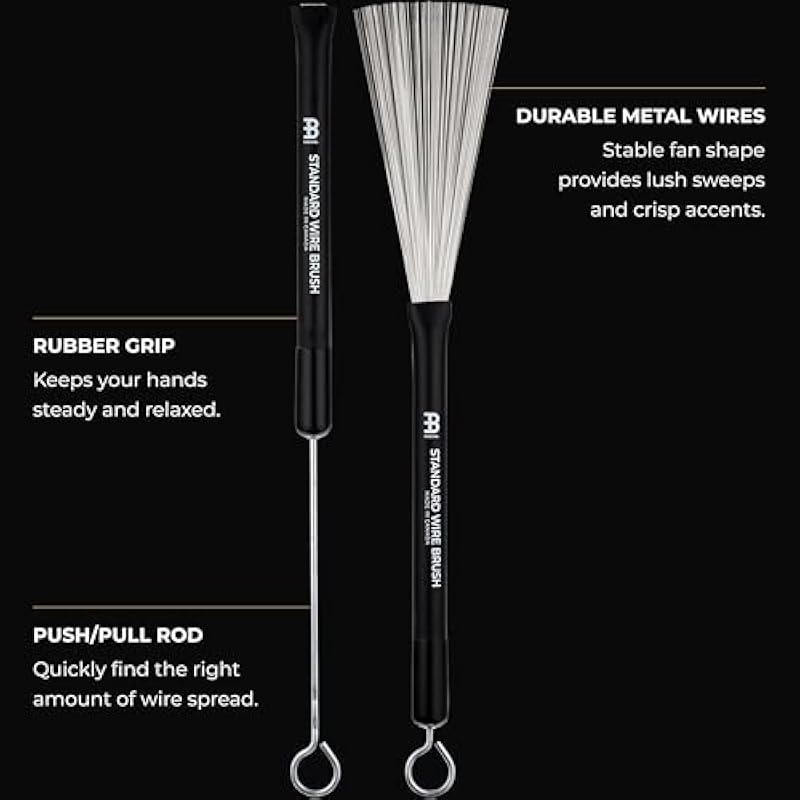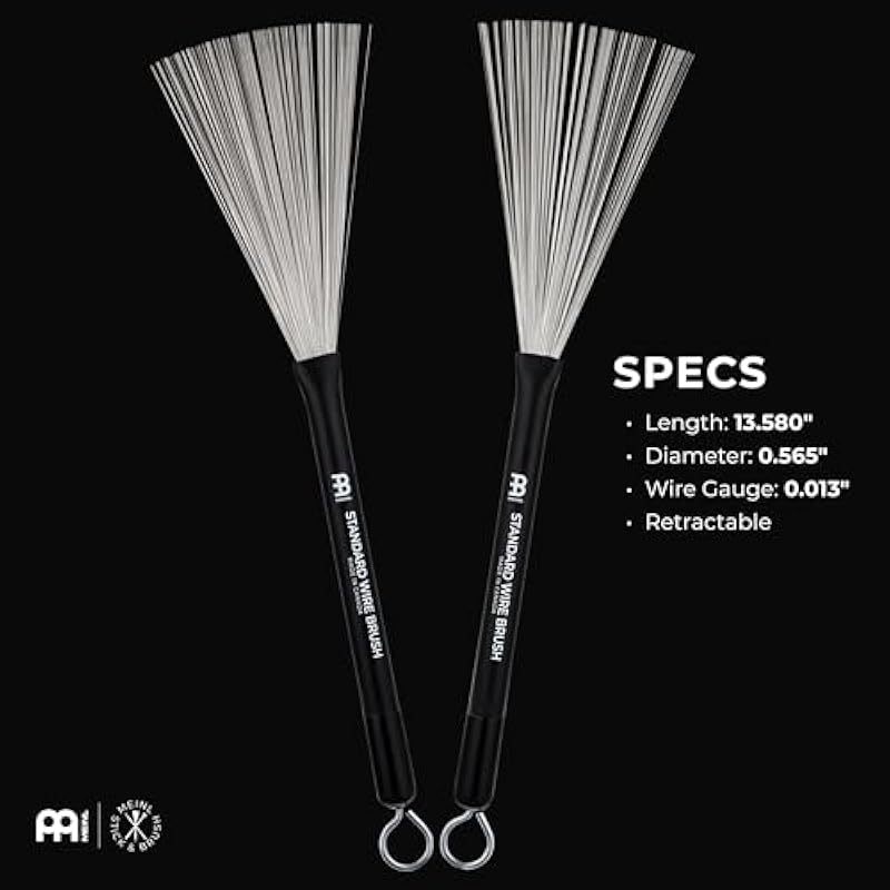 Meinl Stick & Brush Standard Drum Brushes Pair, Metal Wires with Retractable Push/Pull Rod — Made in Canada — for Jazz, Lessons, and Acoustic Music (SB300)