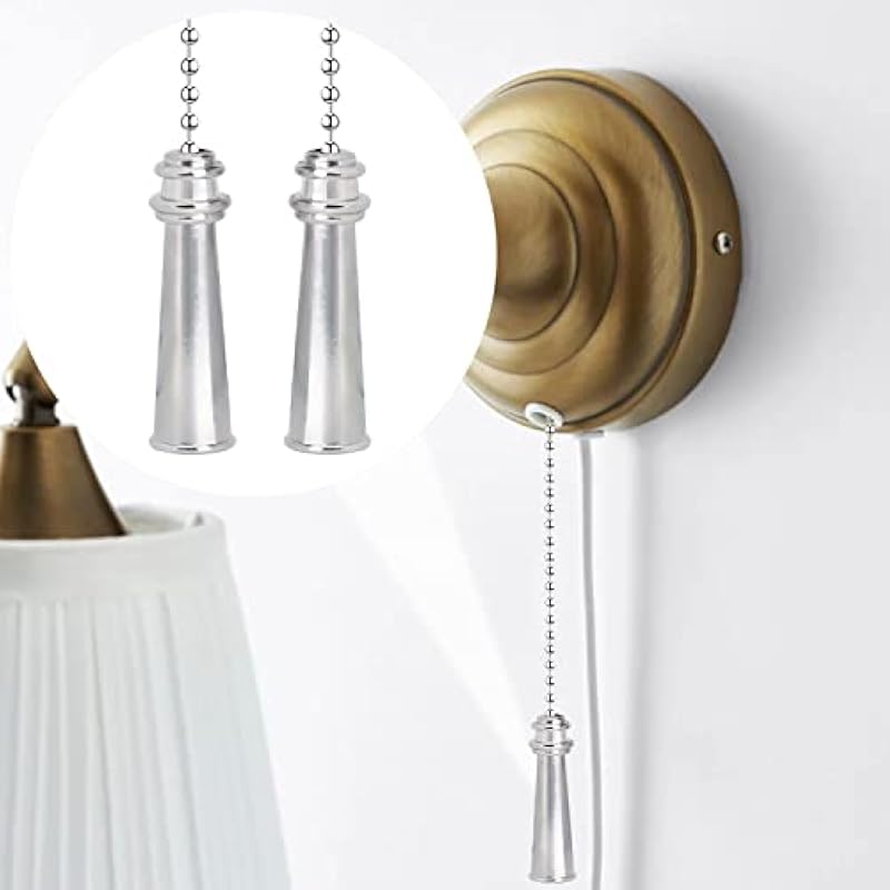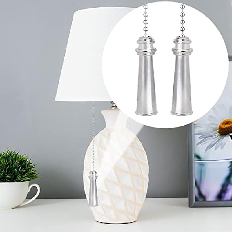 Metal Ceiling Fan Pull Chain Set, Decorative Fan Pull Chain Pendant Extension, 12 Inches Lighting & Fan Beaded Ball Fan Pull Chain Extender Ornament with Connector, 2 Pack (Silver)