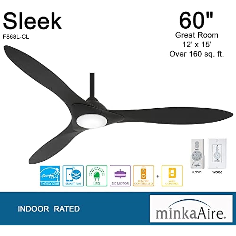 Minka-Aire F868L-CL/CL Sleek 60″ Smart Ceiling Fan with LED Light, Remote and Wall Control