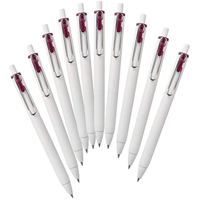 Mitsubishi Pencil Uni-Ball One UMNS38.60 Gel Ballpoint Pens, 0.01 inches (0.38 mm), Bordeaux Black, 10 Pieces