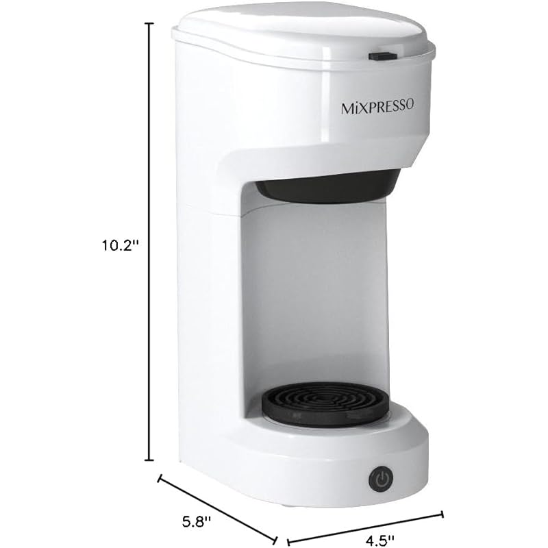 - Perfect Single Serve One Cup Coffee Maker: Our white coffee maker mini offers two convenient ways to brew: simply add water to the tank, insert a single cup coffee pod or ground coffee, and enjoy hot coffee in minutes! While the maximum reservoir holds up to 14oz, it’s ideal for brewing 8–12oz personal cups for best flavor and brewing performance. Compact size: 10.4″ (H) x 4.5″ (W) x 6.6″ (L).