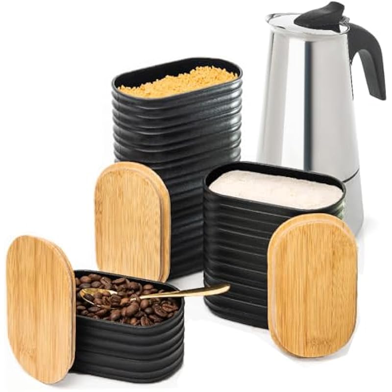 - Multi-different Use: Our 3 different-size storage containers with a silicone lid will help you keep dry ingredients such as pasta, cereal, beans, rice, and nuts. Perfect for modern pantry decor. Great as a canister for coffee beans or ground coffee, tea, sugar, cookies, and snacks.