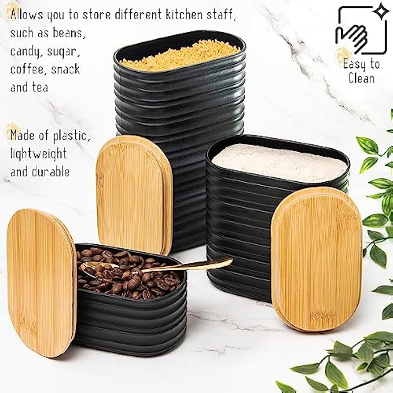 - Fresh For Longer: The kitchen canisters with bamboo lids have silicone sealing rings that keep the air out, creating a 100% airtight environment to keep food dry and fresh for longer. Our canister sets for kitchen counter are at different heights for multiple purposes.