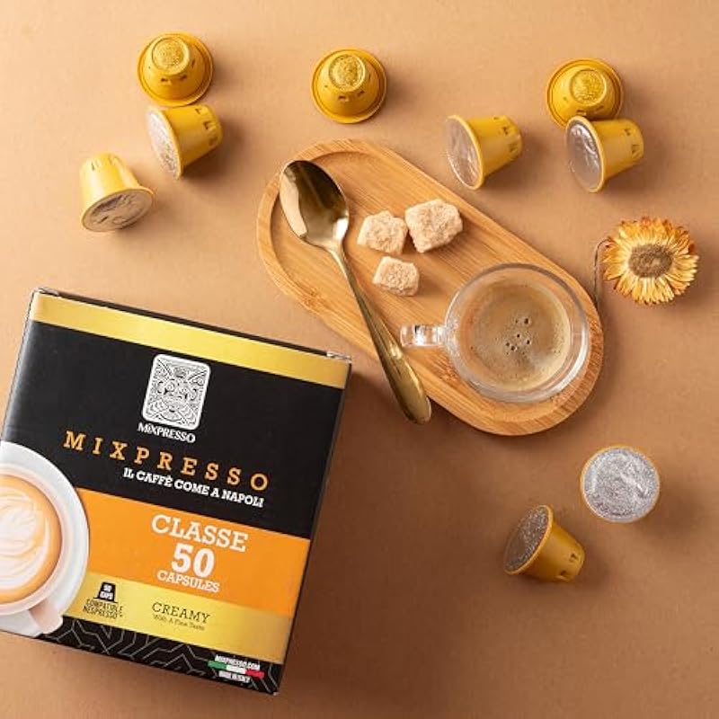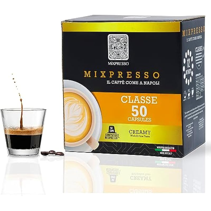 Mixpresso Classe Coffee Espresso Capsules Compatible With Nespresso Original Brewers, Single Cup Coffee Pods 100% from Italy, Medium Roast 80% Arabica Espresso, 50 Count Coffee Capsule Intensity 8/12