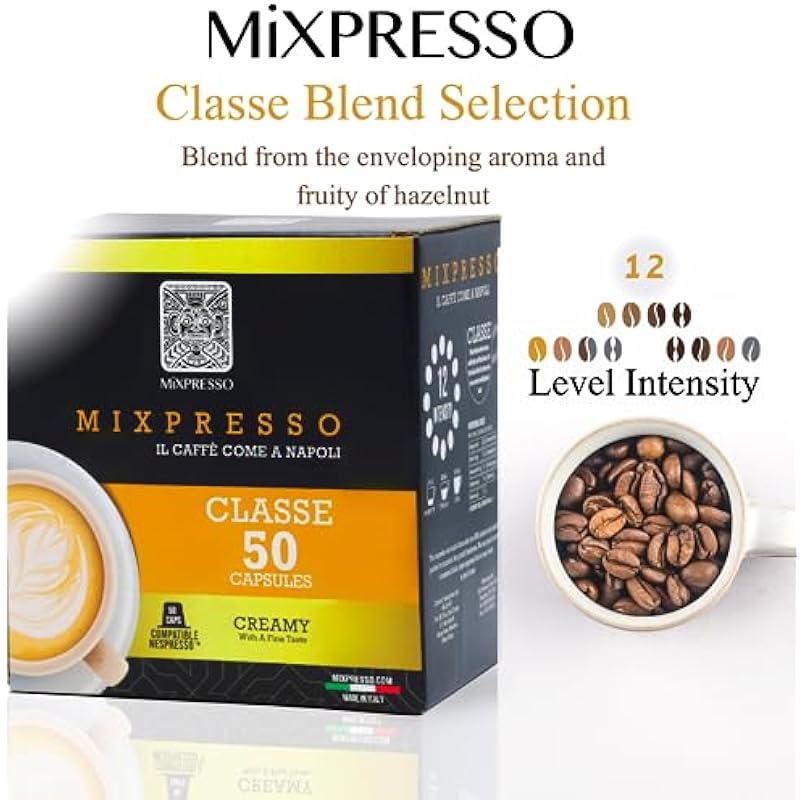 Mixpresso Espresso Machine Bundle with Nespresso Compatible Capsules, Italian Roasted Coffee and Capsule Spinning Carousel Holder – Compact Home Coffee Set, One-Touch Operation
