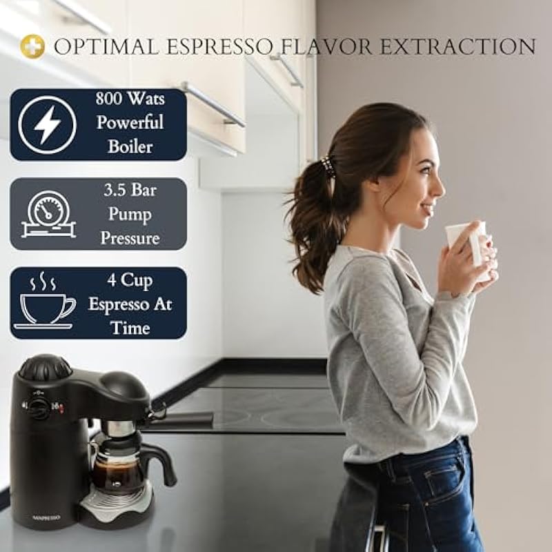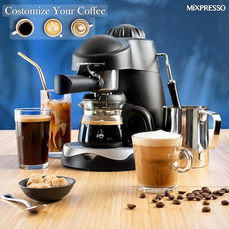 Mixpresso Espresso Maker, 3.5 Bar Espresso Machine With Milk Frother, 4 Cup Espresso/Cappuccino Maker, 800w Coffee Maker With Glass Carafe, Latte and Cappuccino Machine