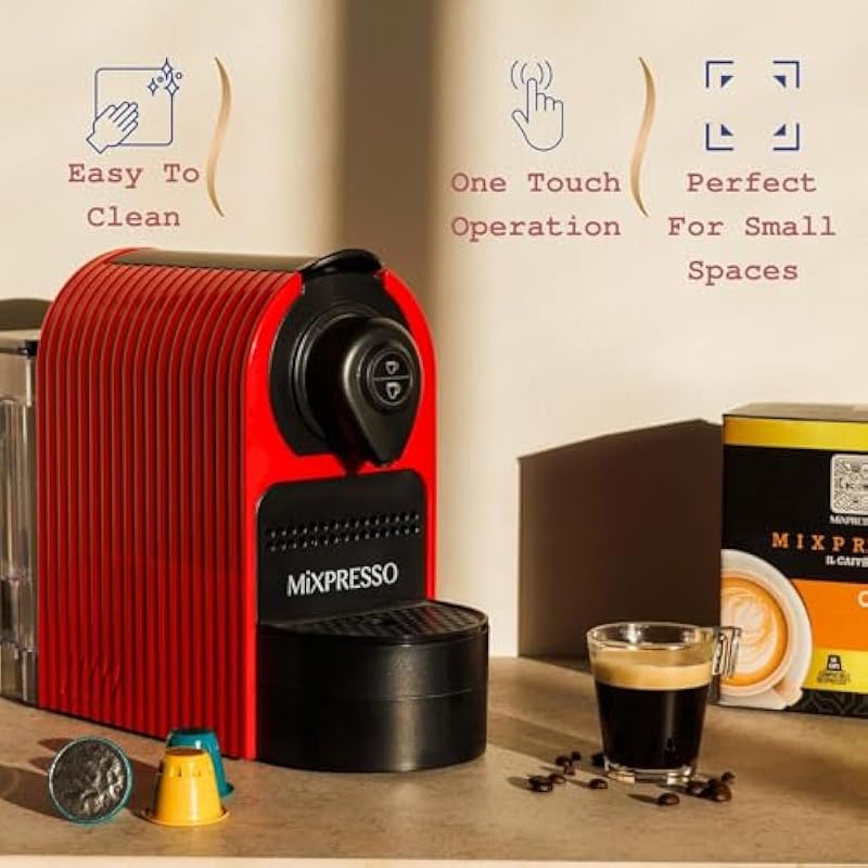 Mixpresso Red Espresso Coffee Machine – Compact 1400W Single Serve Coffee Maker Compatible with Nespresso OriginalLine Capsules, One-Touch Operation, 19-Bar Italian Pump, 27oz Water Tank