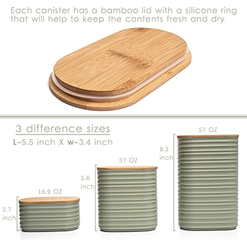 - Fresh For Longer: The kitchen canisters with bamboo lids have silicone sealing rings that keep the air out, creating a 100% airtight environment to keep food dry and fresh for longer. Our canister sets for kitchen counter are at different heights for multiple purposes.