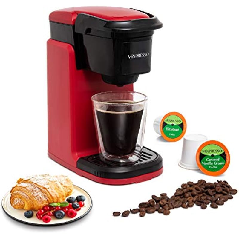 Mixpresso Single Cup Coffee Maker, Personal Single Serve Coffee Brewer Machine, Compatible with Single-Cups, Quick Brew Technology, One Touch Function Red Coffee Maker, 12oz One Cup Coffee Maker