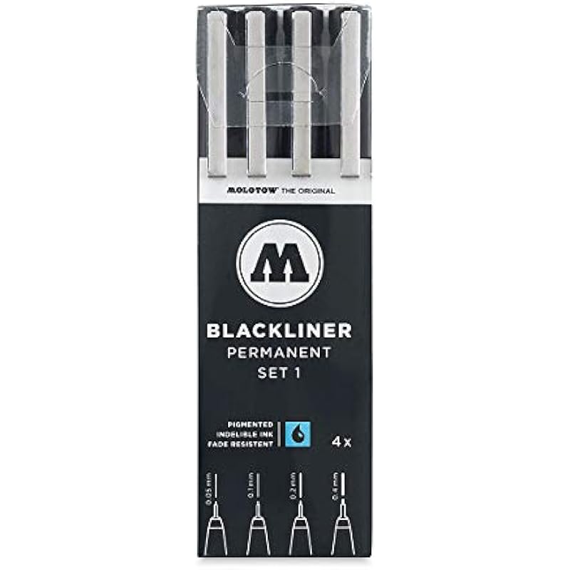 MOLOTOW Blackliner Pen 4-Pen Set 1 – .05mm, .1mm, .2mm, .4mm Tips, 1 Set Each (200.486)