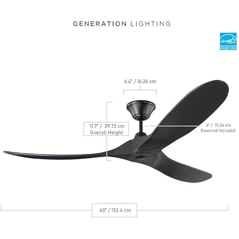 - MAVERICK OUTDOOR CEILING FAN DIMENSIONS: Diameter: 60″; Height: 11.7″ (From Ceiling to Bottom of Fan Housing, Includes 6″ Downrod); Weight 10.6lbs.