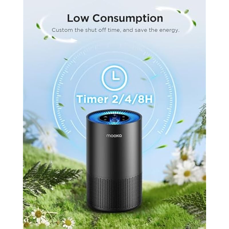 - [Say Goodbye to Polluted Air] MOOKA BP-S0610L air purifier adopts 360° air intake and 2024 upgraded vortex technology which can effectively filter various polluted odors, capture dust and release fresh air. The air purifier for home covers an area of up to 1300ft², with 4 air changes per hour in 325ft². Modern design fits any space and is perfect for adults, pets, children, the elderly, and anyone who wants to improve air quality.