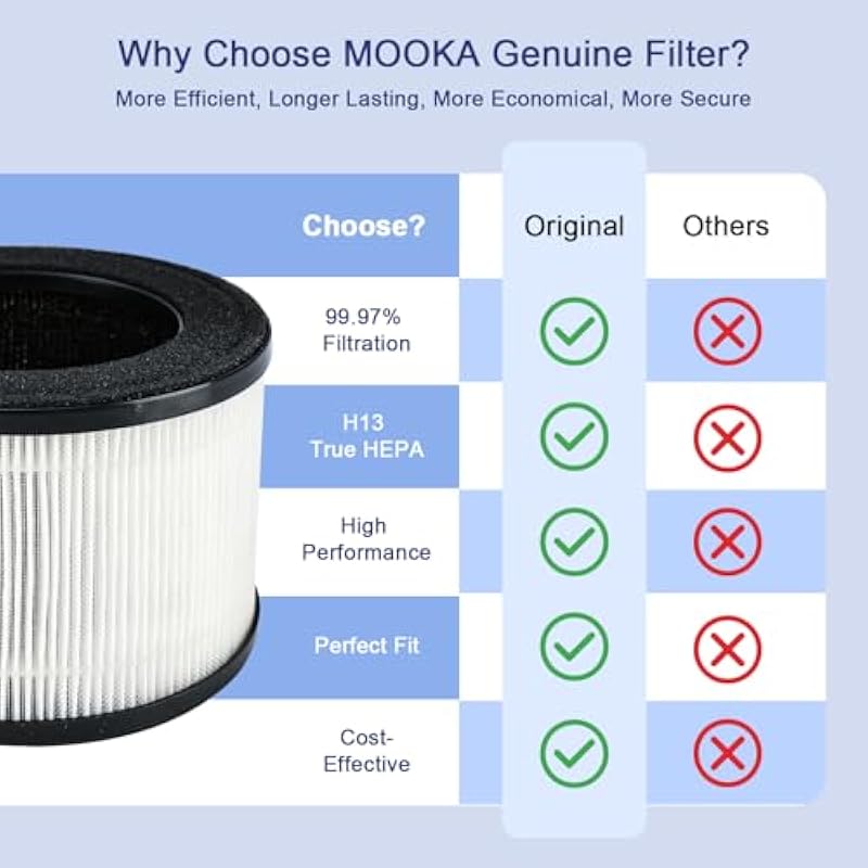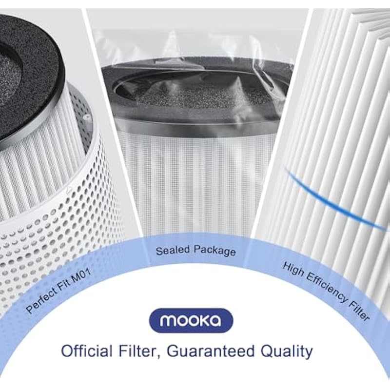 - Genuine Mooka Air Purifier Replacement Filter: certified replacement filters for the Mooka M01 air purifier. Item size: 5.12×5.12×3.39 inches.