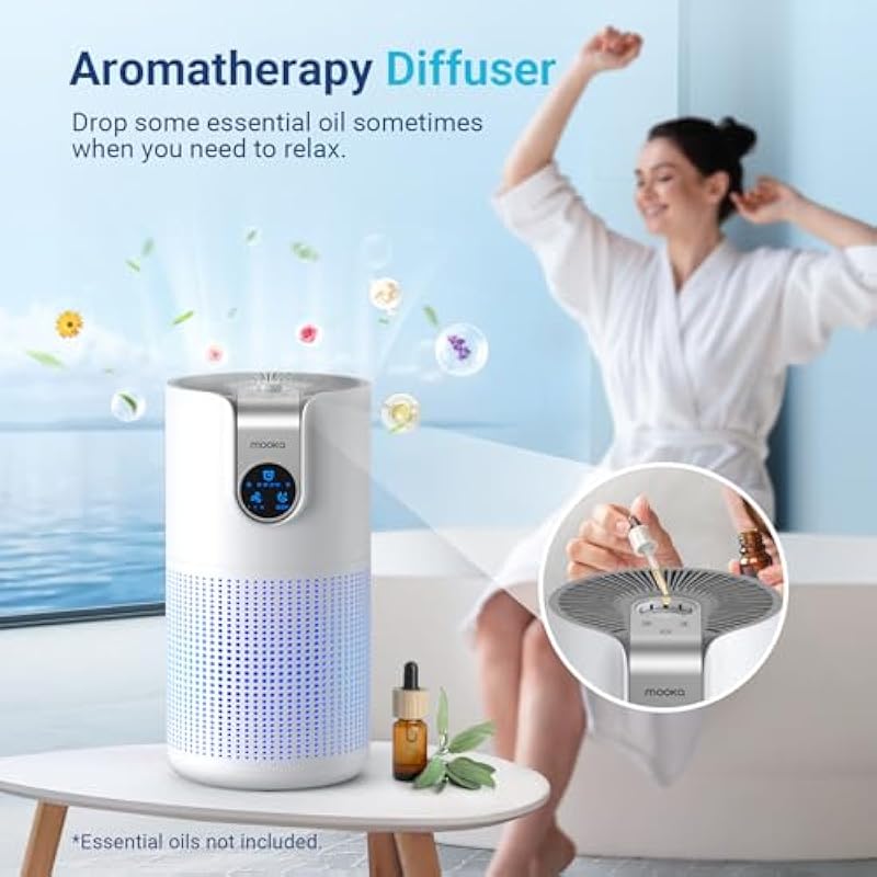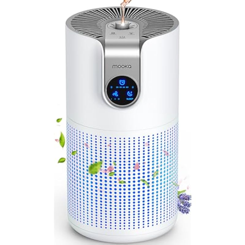 - Multifunctional Air Purifiers for Home: MOOKA M03 contains all the functions of a powerful air purifier. This Large Room air purifier covers an area of up to 1500ft² and is equipped with an imported H13 True HEPA filter that can quickly catch wildfire smoke, pet hair, dander, odor, pollen, and dust particles. It also has functions like Aromatherapy, 4 fan speeds, child lock, timer, sleep mode, filter replacement indicator, and the optional night light.