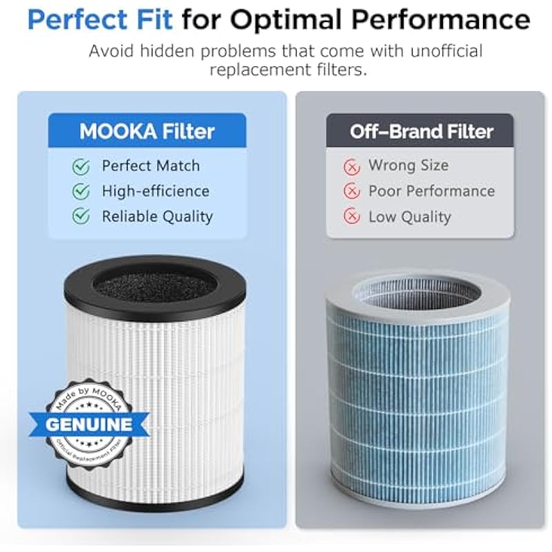 MOOKA M05 Air Purifier White (Filter pre-installed) & 2 Pack Extra Official Certified Replacement Filter,Air Purifiers for Home Large Room Up to 1250 Ft², MOOKA H13 HEPA Air Purifier for Pets Dust