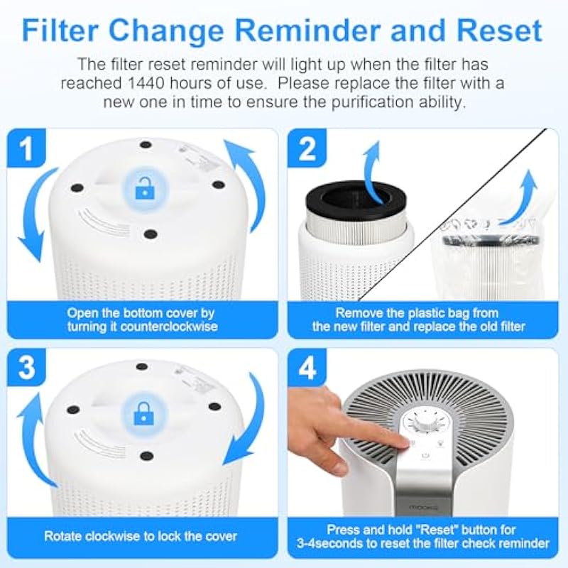 - MOOKA Air Purifier Replacement Filter: Official certified replacement filters for the MOOKA M03 H13 true HEPA air purifier-ASIN: B0CJYC2V34 (1 PACK), B0CJY4YZJC (2 PACK).