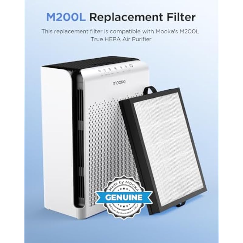 - MOOKA Air Purifier Replacement Filter: 2 PACK Official certified replacement filters for the MOOKA M200L H13 true HEPA air purifier-ASIN: B0F4X8YRPY.