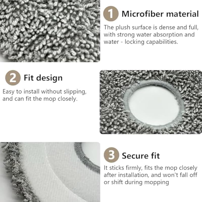 - Functions:The mop pad is made of microfiber,strong water absorption, work well on a variety of floors such as tiles, marble, and hardwood floors. It can easily deal with various stains, such as traces, juice residue, oil stains on the floor, etc. It can be washed with water and easy drying