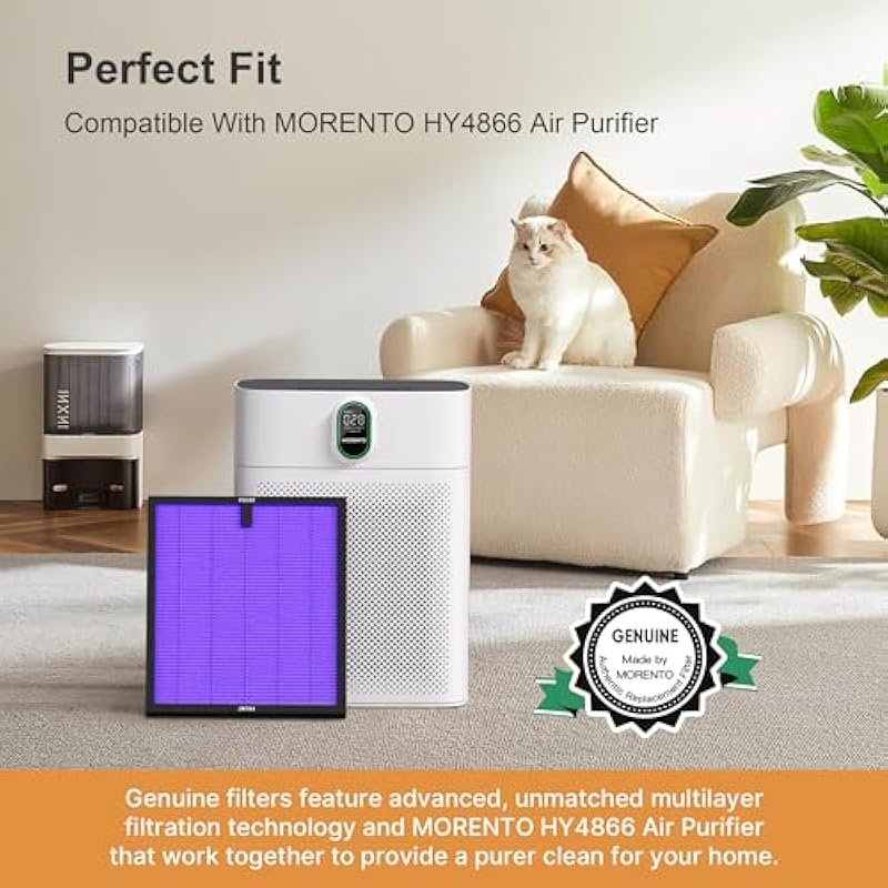 - Genuine Replacement Filter for HY4866 Air Purifier: MORENTO air purifier replacement filters guarantee certified fit and maximum filtration.Off-brand filters frequently fail HEPA testing standards,fit incorrectly,reduce efficacy,and may cause damage to your MORENTO air purifier