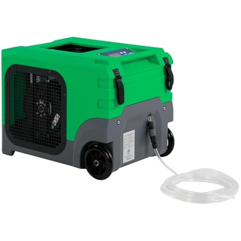 - Comes back after power failure, no need to turn on manually, this water damage Restoration dehumidifier designed with Rigid handle and semi-pneumatic wheels to facilitate transport.