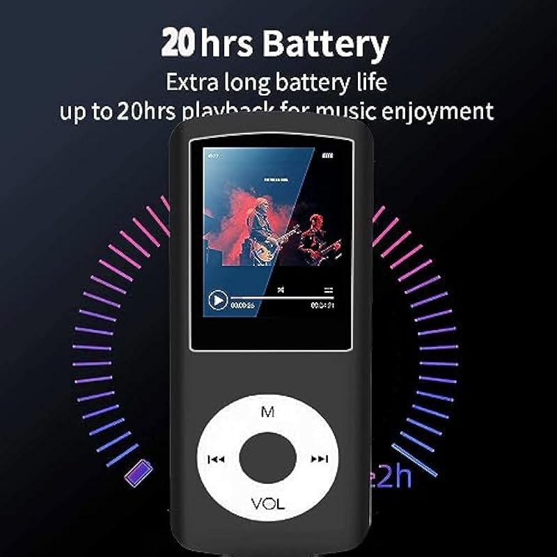 - 【64GB Large Storage】The portable MP3 player comes with a 64 GB memory SD card and support up to 128GB(not included). Play music with MP3/Voice record/FM Radio/E-book support TXT format/ photo view / video with AMV format.