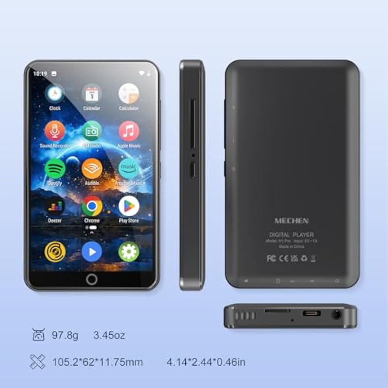MP3 Player with Bluetooth and WiFi, MECHEN Mp3 & Mp4 Music Player with Spotify, Amazon Music, Deezer, Audible, Browser, 4.0″ IPS Touch Screen Android Player with Speaker, FM Radio, Up to 512GB
