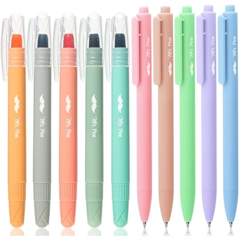 - Package includes 5 gel highlighters in a delightful assortment of non-neon, soft, and beautiful colors and 5 retractable gel pens in assorted colors, offering a versatile and coordinated set for all your writing and highlighting needs.