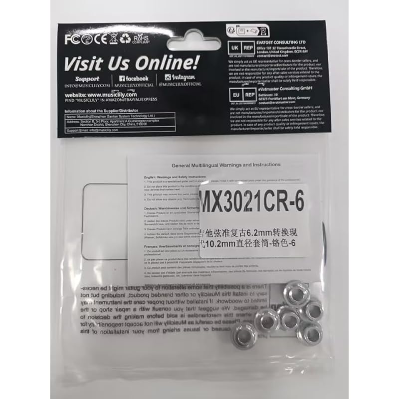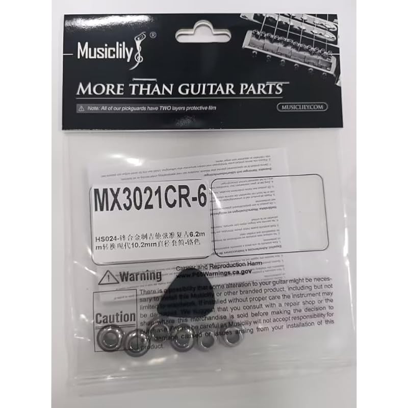 Musiclily Pro 6mm to 10mm Vintage to Modern Sized Guitar Tuner Conversion Bushings Tuning Pegs Adapter Ferrules, Chrome (Set of 6)