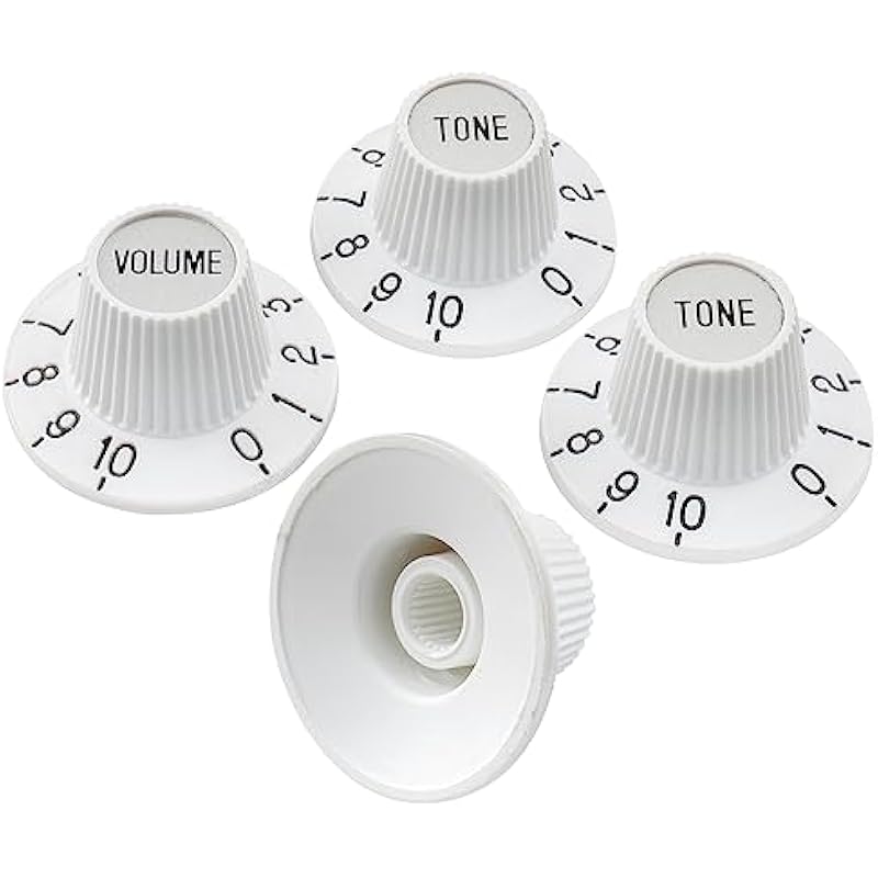 Musiclily Pro Fine 24 Splines Witch Hat Knobs Top Hat Knobs Tone Volume Control Knobs for Electric Guitar Bass Amplifier Effect Pedal, White with Silver Reflector (Set of 2T2V)