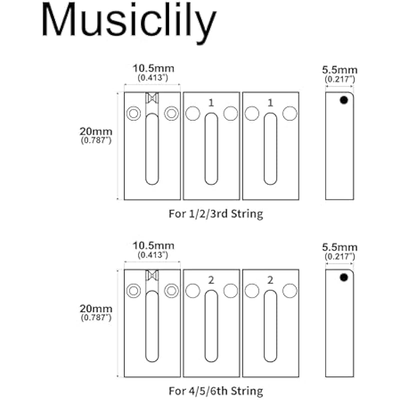 - Individual saddle width: 10.5mm (13/32 inch), saddle’s back mark 1 means for 1/2/3rd string, 2 means for 4/5/6th string