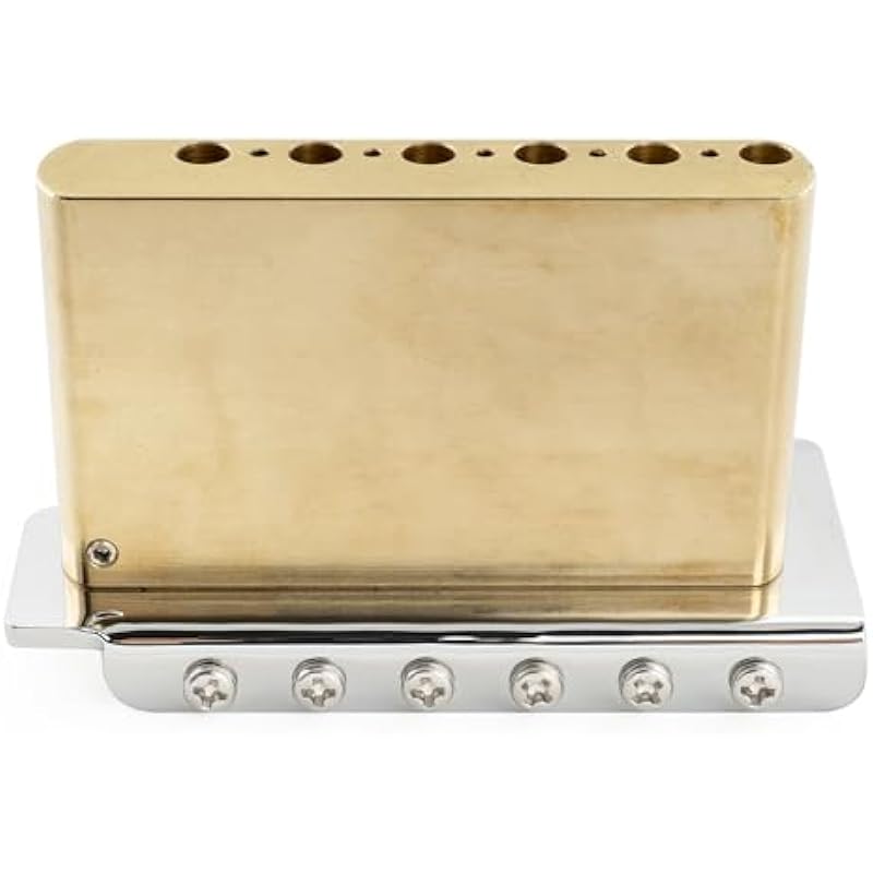 - Full solid brass modern saddles, stainless steel plate, stainless steel 5mm push-in tremolo arm, full solid brass block with 42mm (1-21/32 inch) depth, ONLY fit over 45mm (1-49/64 inch) thickness guitar body, brings better sustain