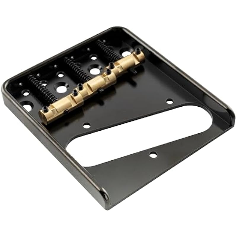 Musiclily Ultra 54mm (2-1/8 inch) Full Solid Aluminum Plate Vintage Tele Bridge with Brass Compensated 3-Saddle for Telecaster Style Electric Guitar, Black