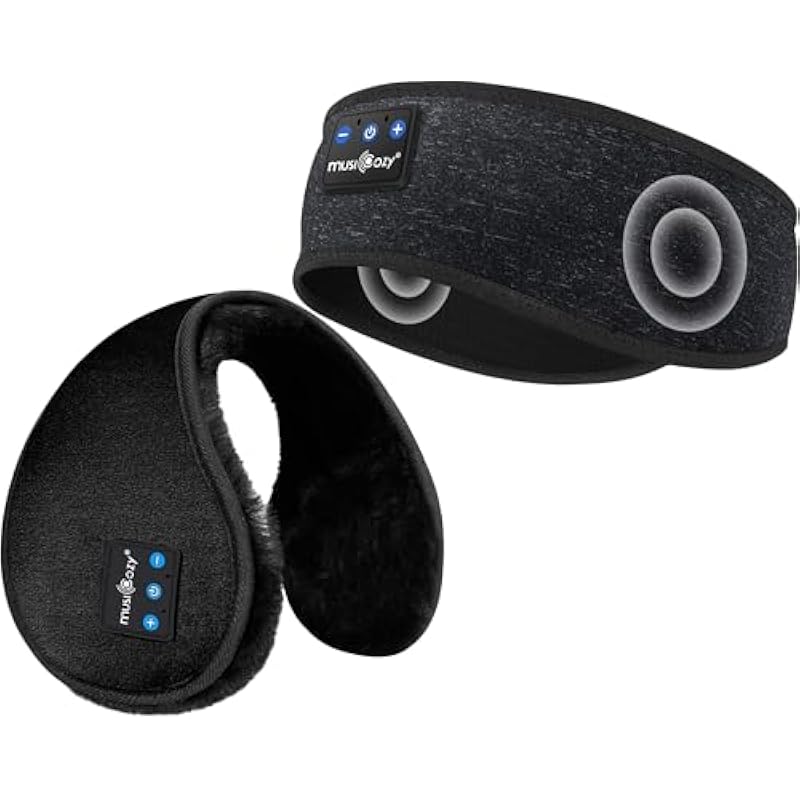 MUSICOZY Ear Warmers Earmuffs Sleep Headphones Bluetooth Sports Headband for Winter Side Sleepers Running Travel Yoga Meditation, Earmuff & Headband, Pack of 2