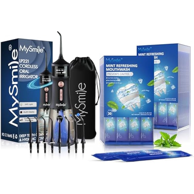 MySmile LP221 UVC Sterilizable Cordless Water Flossers Mouthwash Alcohol Free, Fresh Mint, 60 Uses