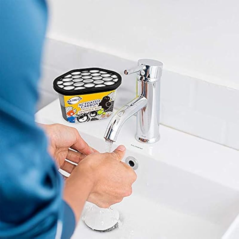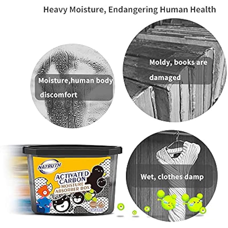 - 【EFFECTIVE DEHUMIDIFICATION】The NATRUTH moisture absorber box with Activated Charcoal effectively absorb extra moisture from the air and trap the moisture in box. This product features a large capacity of 8.11 oz globular calcium chloride particles inside moisture absorber could efficiently enlarge the dehumidifying area and eliminate unpleasant smell as an air fresher, keeping the place comfortable for a longer time