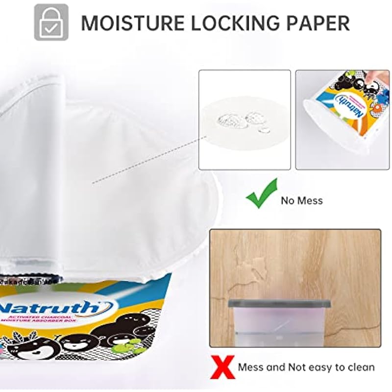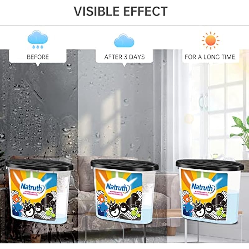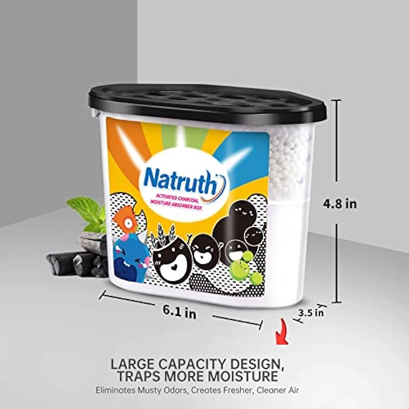 - 【EFFECTIVE DEHUMIDIFICATION】The NATRUTH moisture absorber box with Activated Charcoal effectively absorb extra moisture from the air and trap the moisture in box. This product features a large capacity of 12.5 oz globular calcium chloride particles inside moisture absorber could efficiently enlarge the dehumidifying area and eliminate unpleasant smell as an air fresher, keeping the place comfortable for a longer time