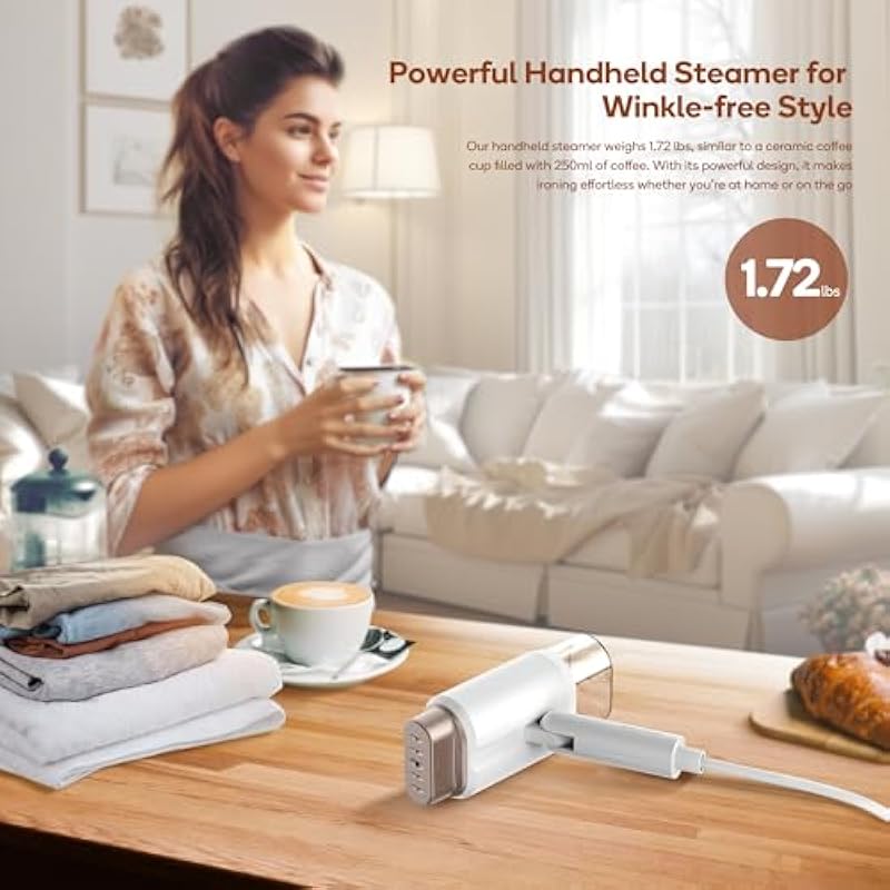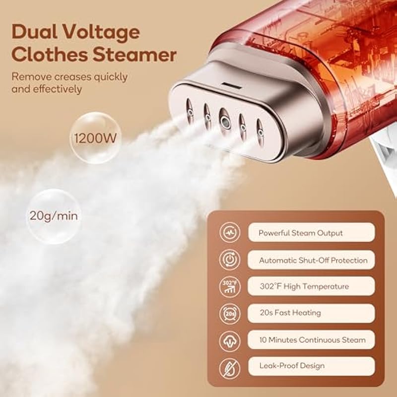 Newbealer Handheld Steamer bundle with Travel Iron for Clothes, Dual Voltage, Powerful Steamer and Dry Iron, Idea Gift