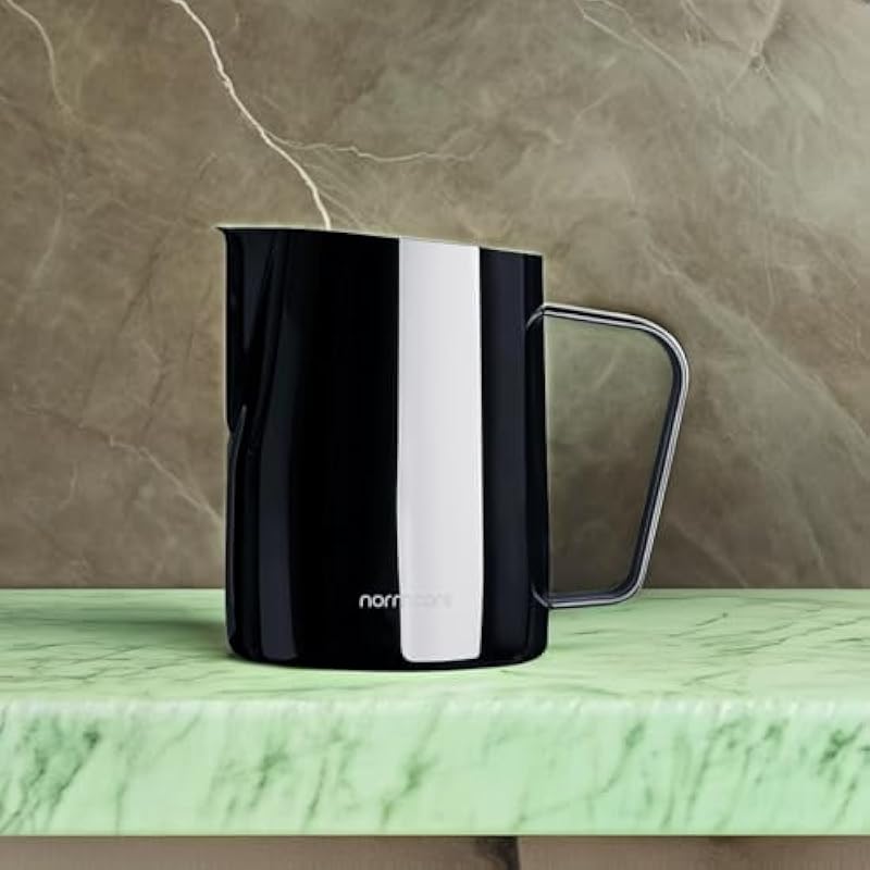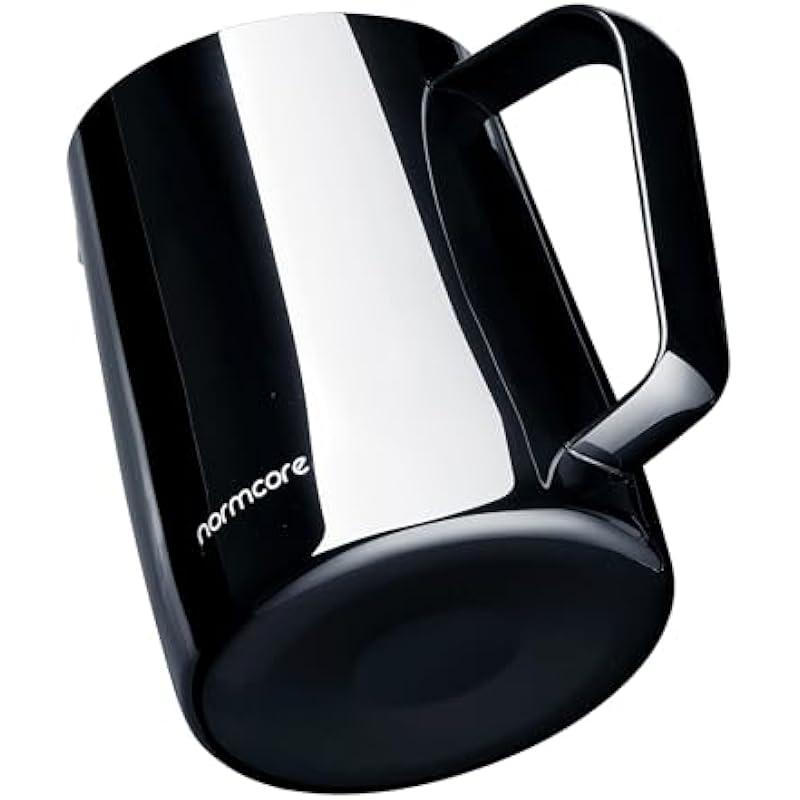 - Normcore Steaming Pitcher – Milk Frother Pitcher with Round Spout, Premium Barista Tools for Precision Latte Art, Measurement on the Inside, 18/8 Stainless Steel, Gun-Metal Black, 15.2 oz (450 ml) Jug