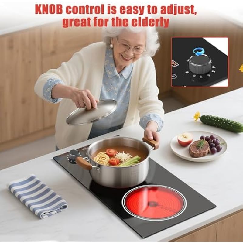 - 【Knob + Touch Control with 99-Min Timer】 Enjoy precision control with 9 heat levels via mechanical knobs, and manage functions like timer, child lock via the touch panel. Set a 1–99 minute countdown timer for electric stove 2 burners and enjoy automatic shut-off for worry-free cooking.