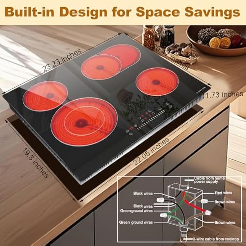 - 【Sleek & Space-Saving Design】Transform your kitchen with this built-in, drop-in electric cooktop. Its sleek black glass surface is not only stunning but also incredibly easy to clean with a simple wipe. The space-saving design fits seamlessly into your countertop, adding a touch of modern elegance. With no plug required, simply connect it to a 220-240V power supply for a clean and polished kitchen look.