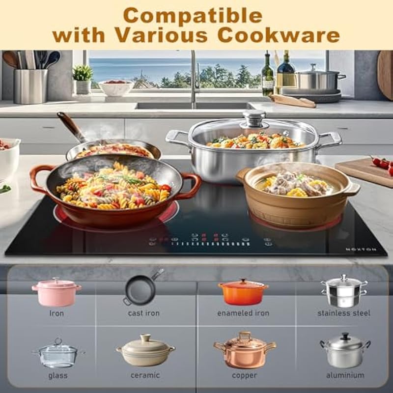 - 【Compatible with Any Cookware】Whether you prefer cast iron, stainless steel, copper, or ceramic, this electric ceramic cooktop works with any cookware that’s flat-bottomed and heat-resistant. The four burners let you cook multiple dishes at once, making it perfect for busy holiday meals or family dinners. From Thanksgiving to Christmas, this 220V electric cooktop ensures that you can cook with ease and style.