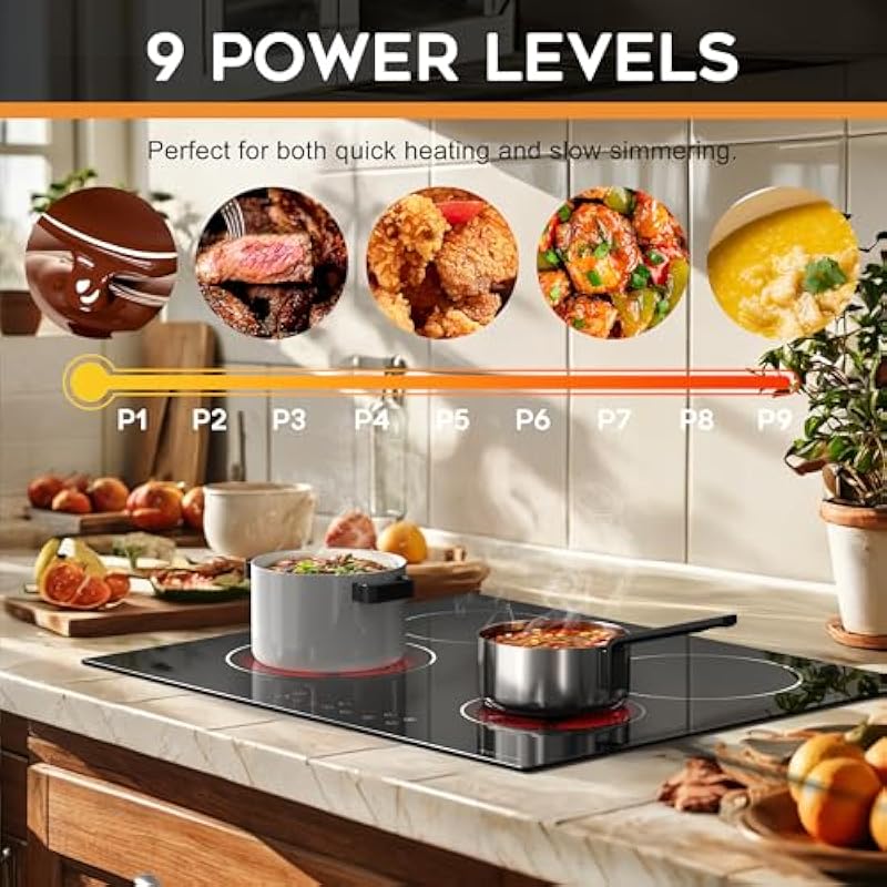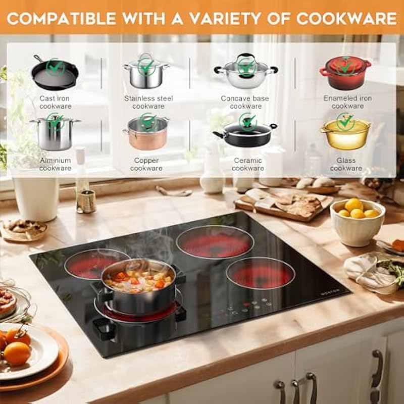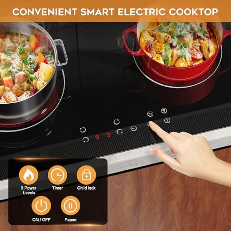 - 【6000W High Power, Faster Heating】The heating speed of all electric ceramic stoves is much slower than induction stoves, but this 24 inch electric ceramic cooktop of ours will not be slow because it has a total power of 6000W, allowing you to finish cooking in a shorter time. It’s best to choose a high-power electric ceramic stove, otherwise the heating speed will be very slow.
