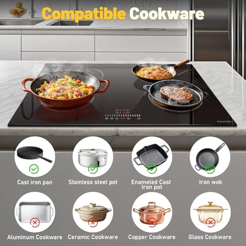 - 【Enhanced Safety Protocols】Safety comes first with our 30″ induction cooktop, which is equipped with multiple advanced safety features. Enjoy peace of mind with Residual Heat Warnings, Auto Shutdown, Overheat Protection, and a Child Lock. These integrated safety measures are designed to protect you and your loved ones from accidents, making our cooktop a safe addition to any kitchen.