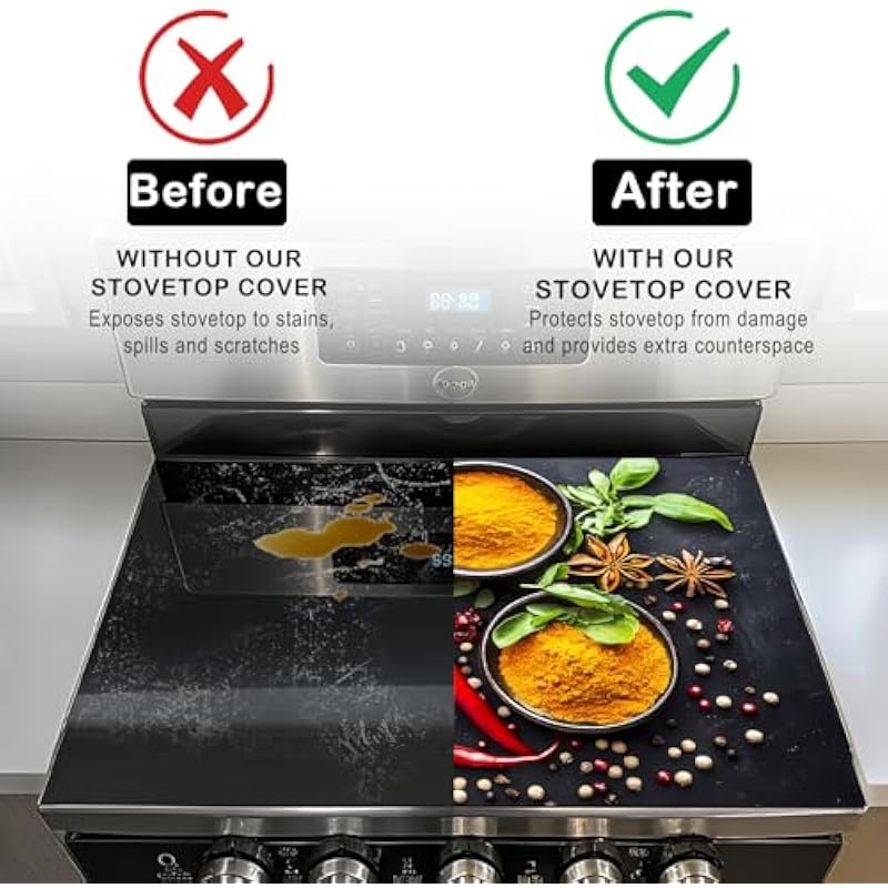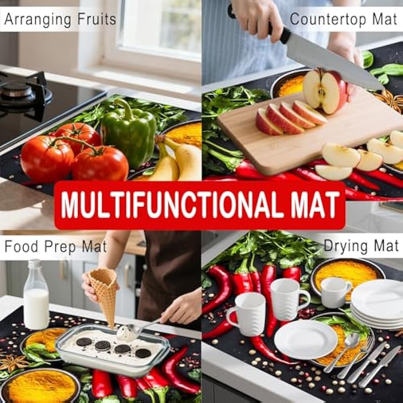 - What You’ll Get:A 20.4”×28.3” diatom mud-polyester stove top cover for gas stoves. It offers heat-resistant protection and safeguards your cooktop from scratches and spills.