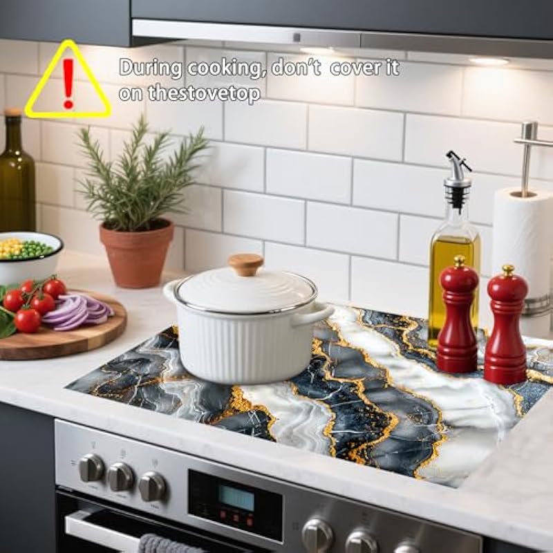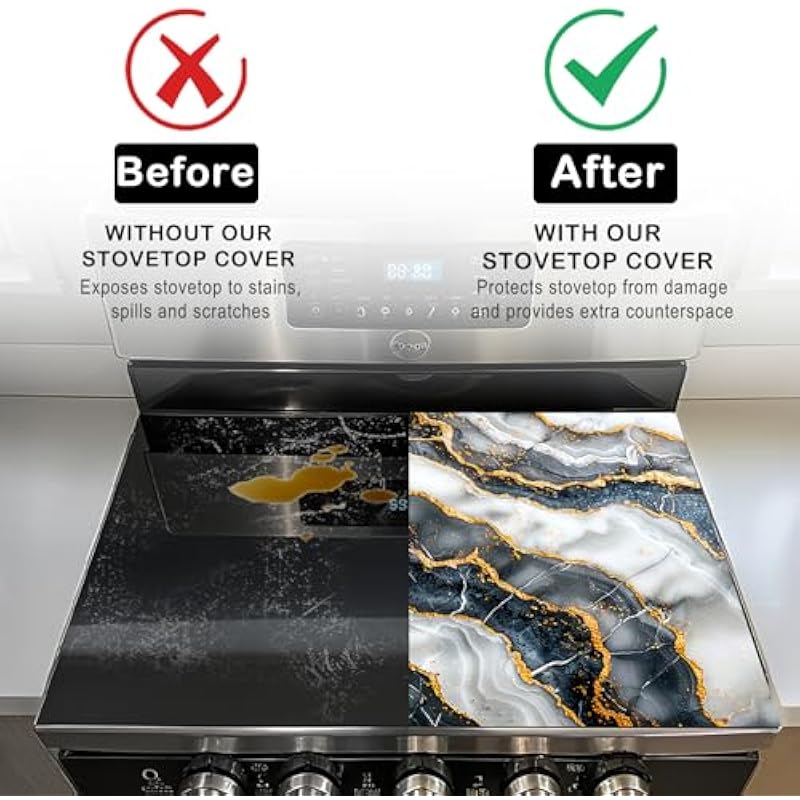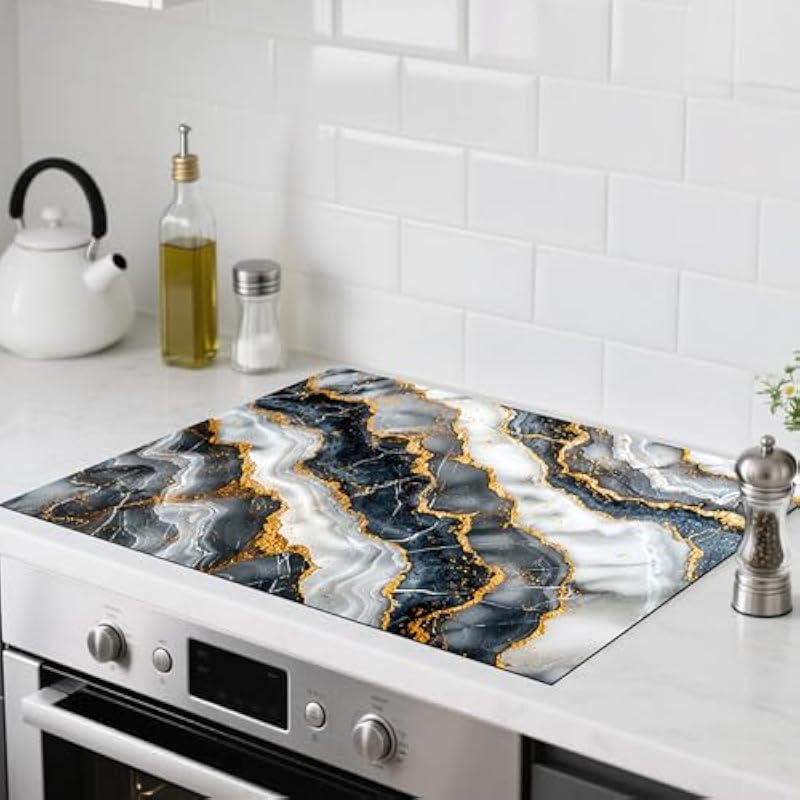 - 【What You’ll Get】A 20”x28” electric stove top cover with a blue-gold agate pattern, shielding your glass cooktop from scratches, spills, and dust while adding luxurious charm.